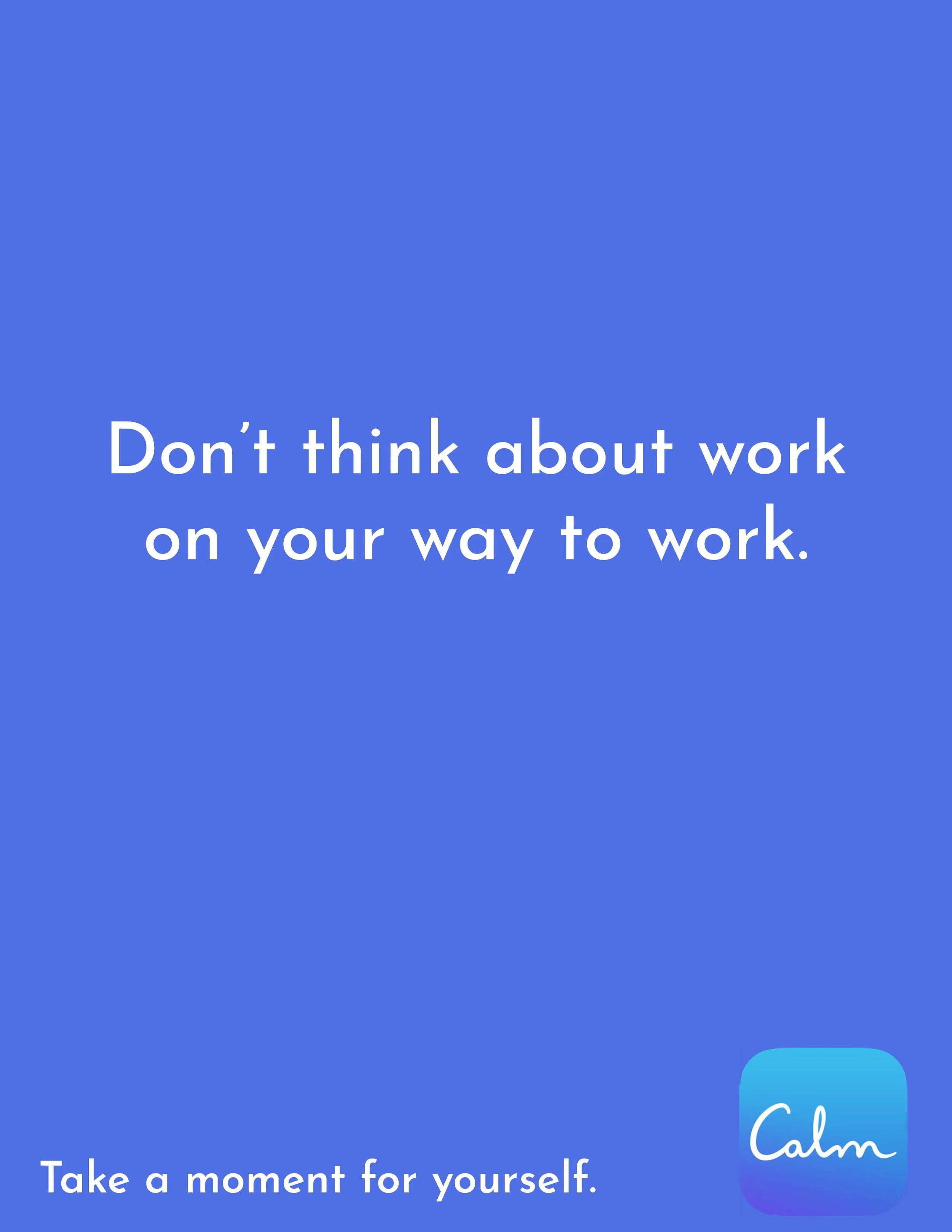 Calm is a sleep, meditation, and relaxation app. This campaign promotes a less recognized feature: ameliorating workplace stress. Finding pause in a stress-inducing work environment is difficult. It’s also the most important place to do so.